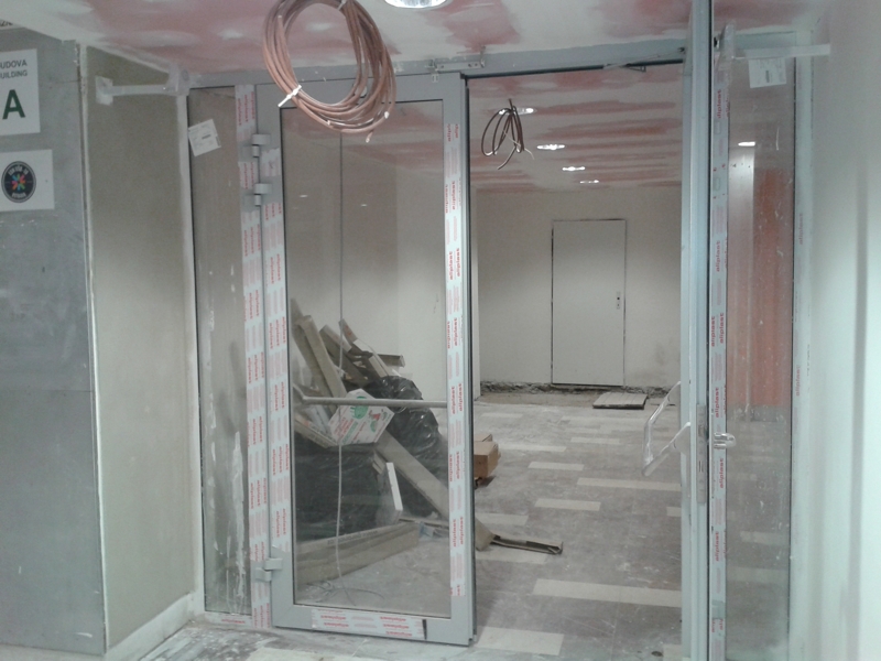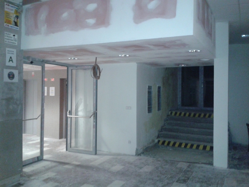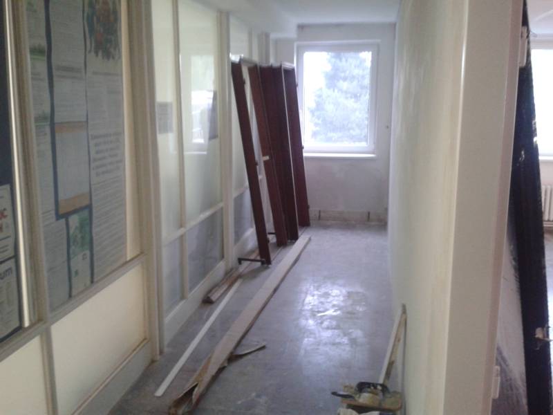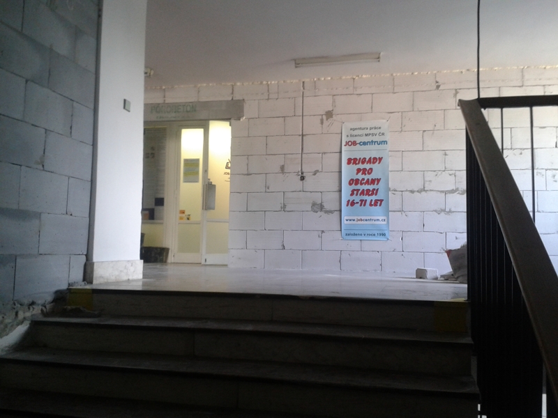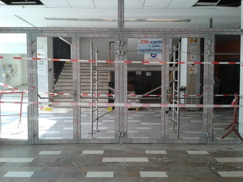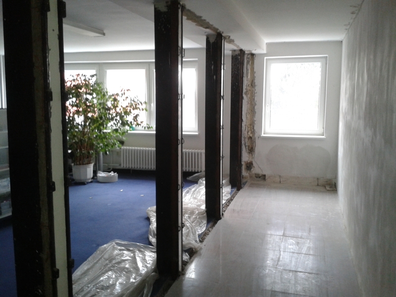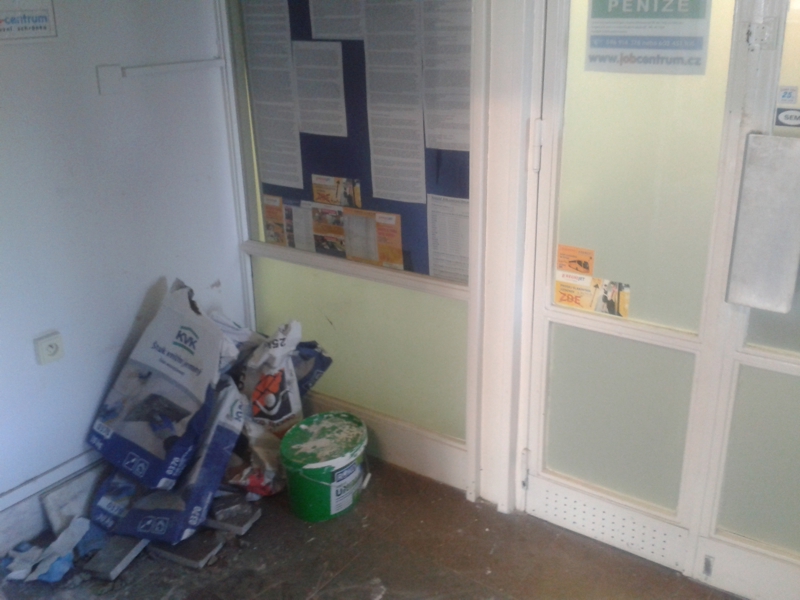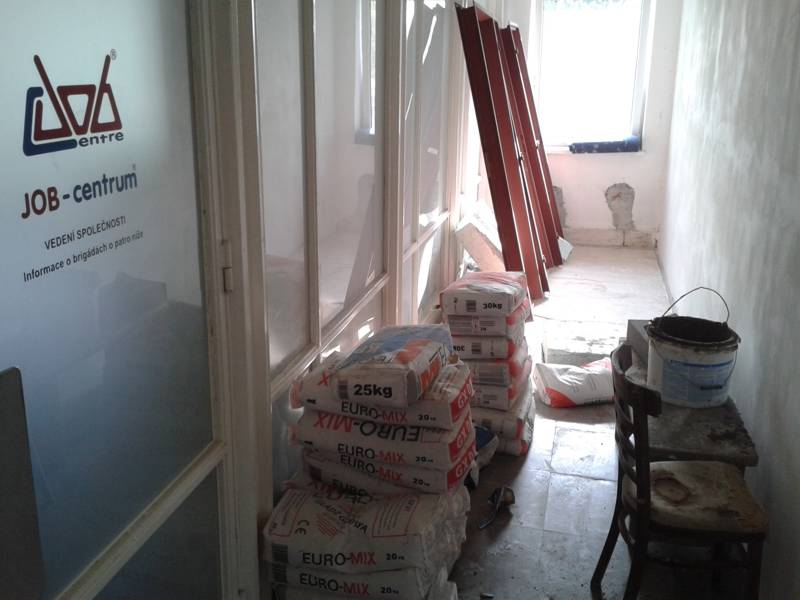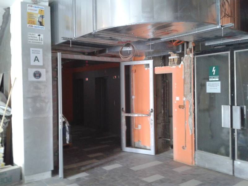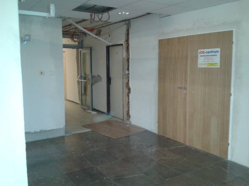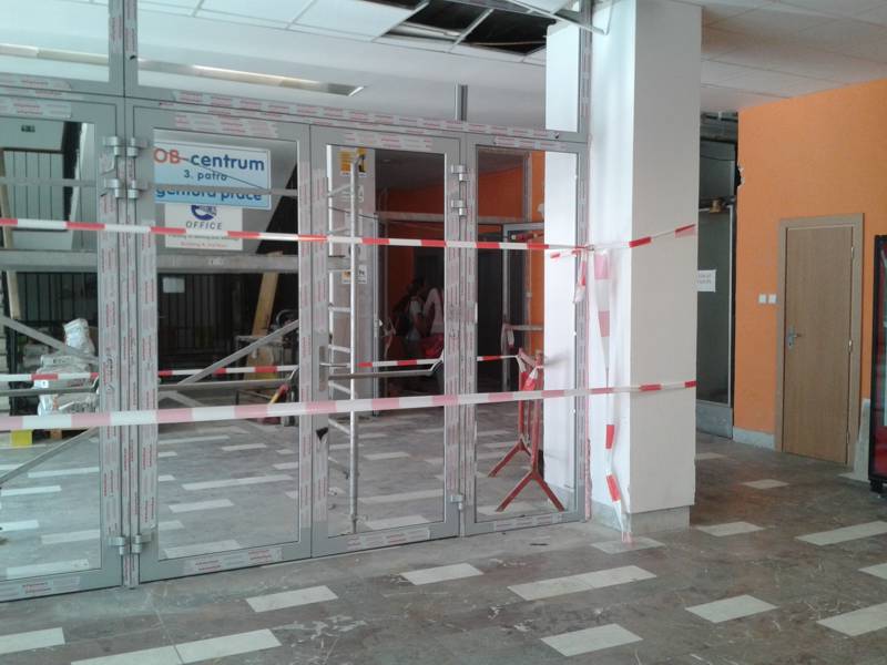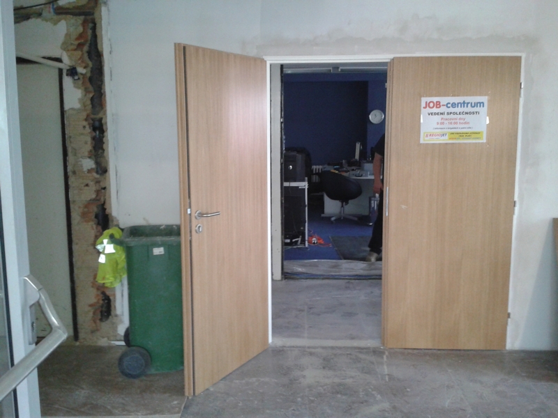 Budování nových požárních příček a dveří na přístupech do budovy A kanceláří JOB-centrum Ostrava červenec 2015 až září 2015, vzhledem kke špatné projektové dokumentaci a skluzům s vícepracemi TRVALO DO KONCE ÚNORA ROKU 2016.