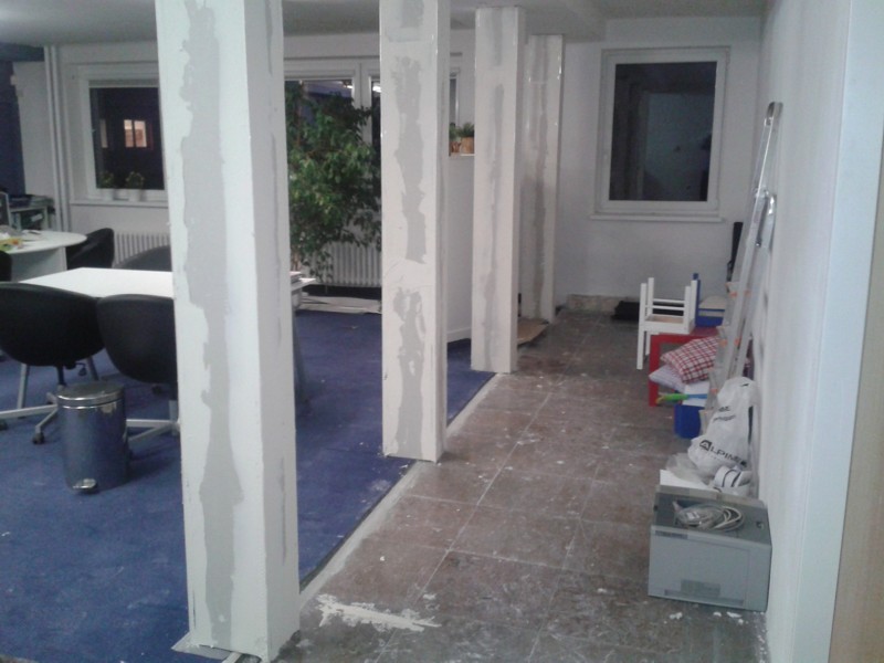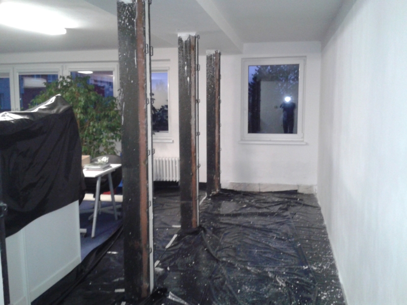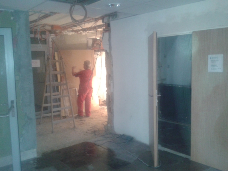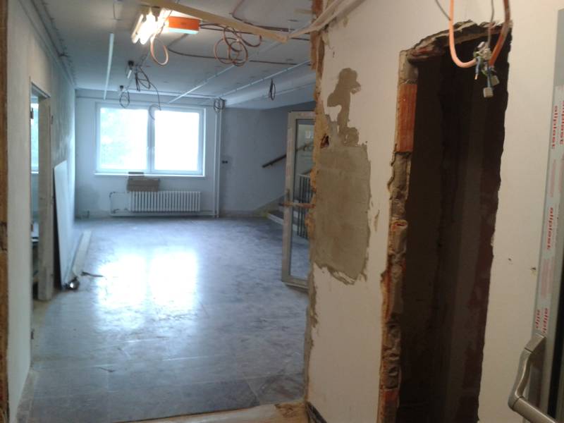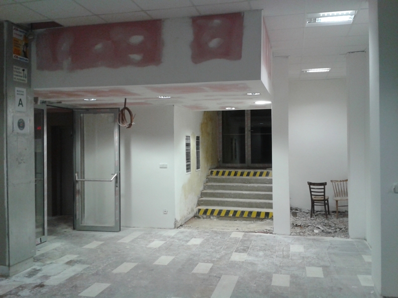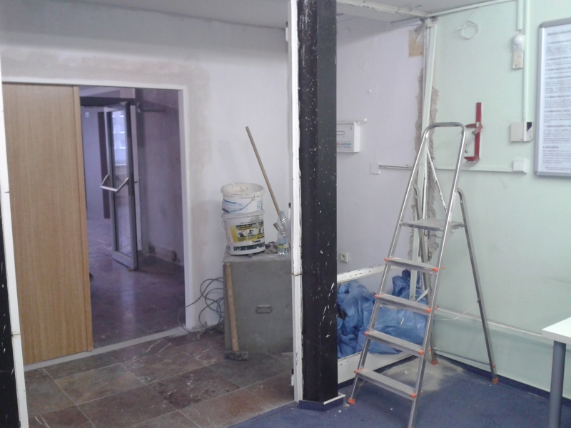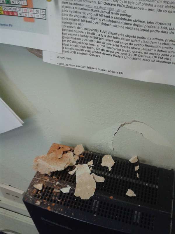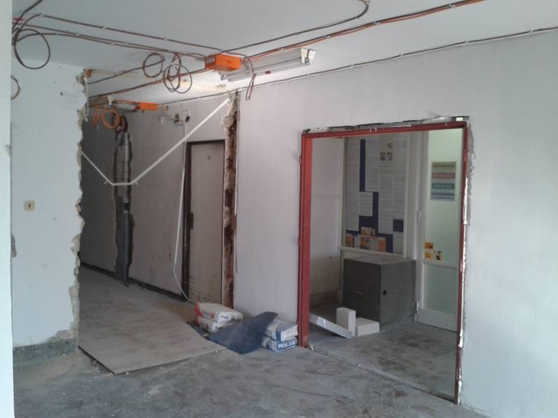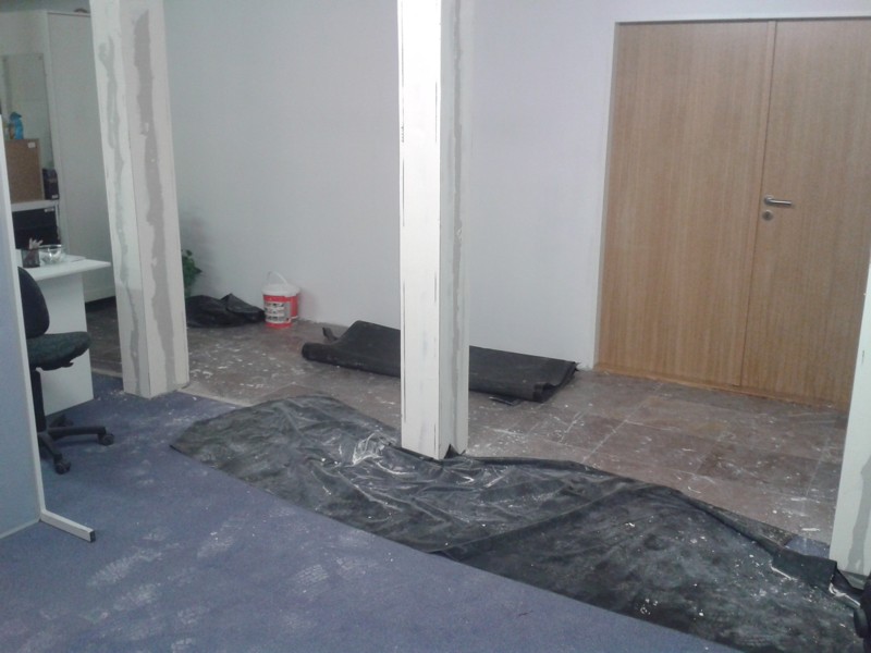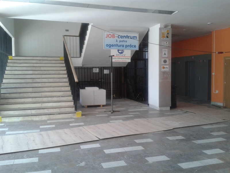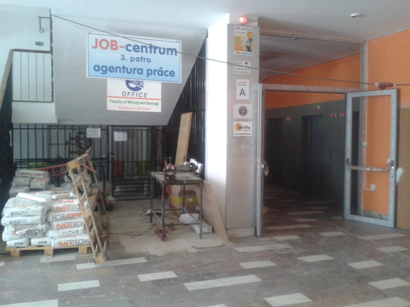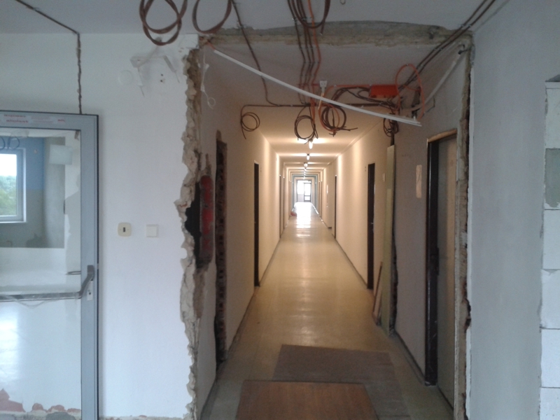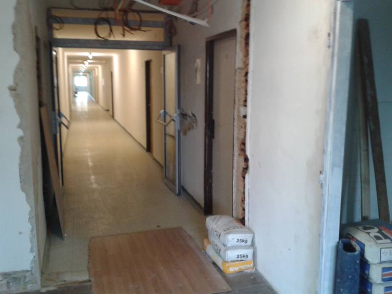 Budování nových požárních příček a dveří na přístupech do budovy A kanceláří JOB-centrum Ostrava červenec 2015 až září 2015, vzhledem kke špatné projektové dokumentaci a skluzům s vícepracemi TRVALO DO KONCE ÚNORA ROKU 2016.